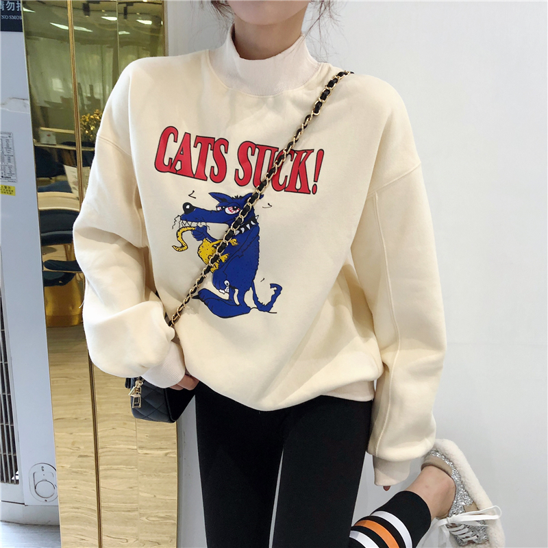 / 慵懶卡通中領加絨衛衣時尚套裝高腰顯瘦絨彈力條紋小腳褲兩件套女