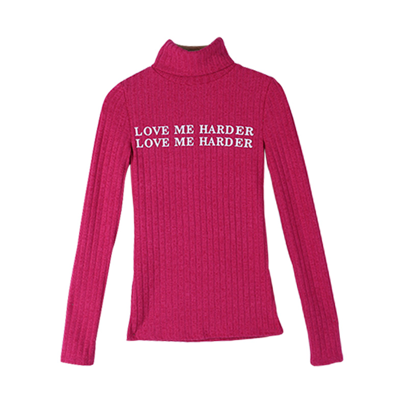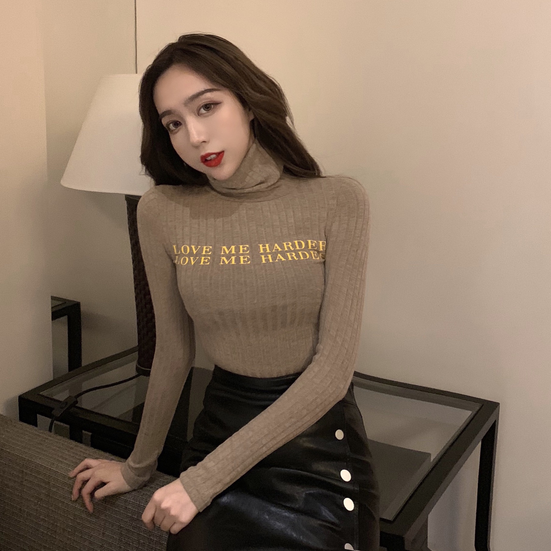 秋冬女裝新款韓版修身顯瘦字母印花高領彈力長袖套頭打底衫上衣潮