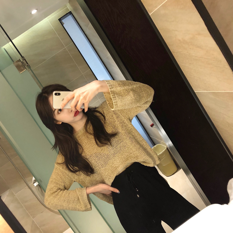 新款秋季韓版長袖短款針織衫套頭毛衣高腰闊腿褲針織長褲時尚套裝