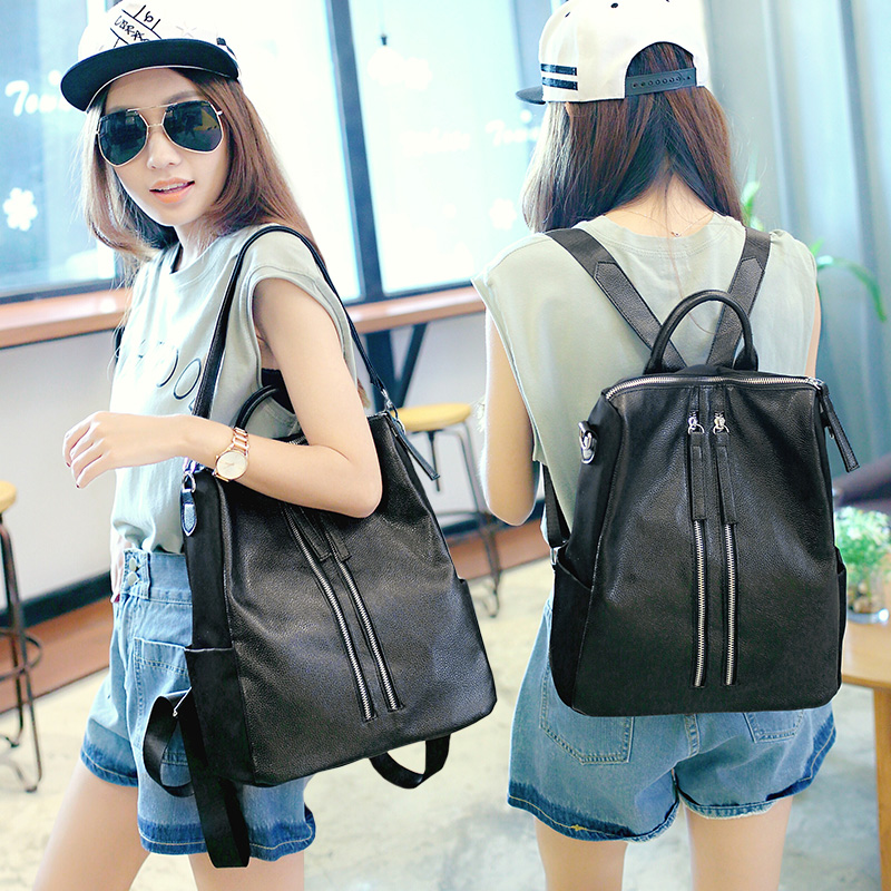 / 雙肩包女韓版pu時尚百搭歐美簡約學生大包包新款女士背包女潮