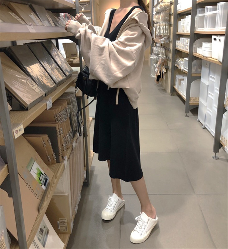 2018早秋時尚新款開衫長袖連帽衛衣外套+修身針織連衣裙A字打底裙