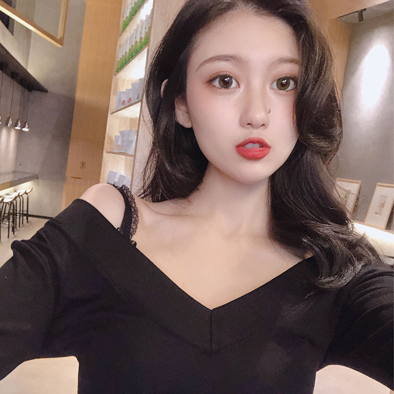 / 露背V領2018秋季新款長袖修身純色顯瘦復古打底chic百搭T恤上衣女