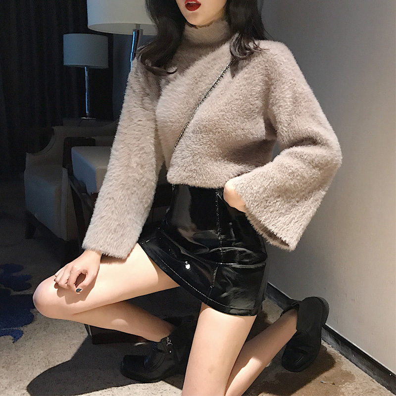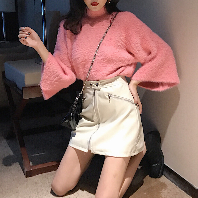 / 港味慵懶風毛衣女半高領寬松顯瘦復古chic新款針織衫喇叭袖上衣潮