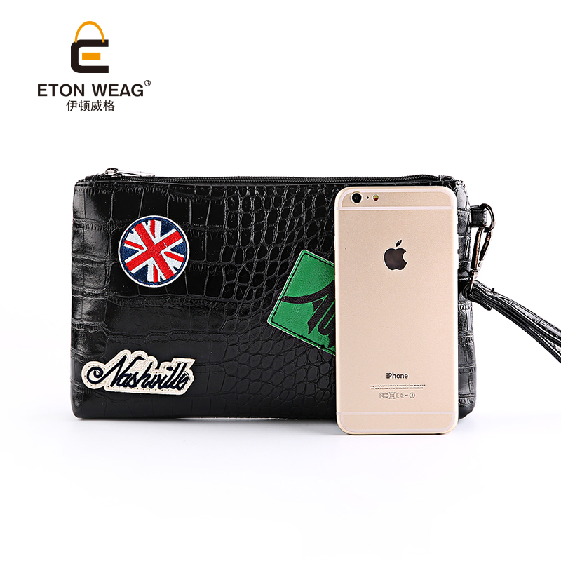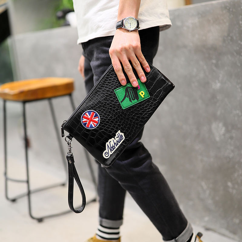 / 韓版男包徽章手拿包男女勛章信封包鱷魚紋手拿包手機包潮男包