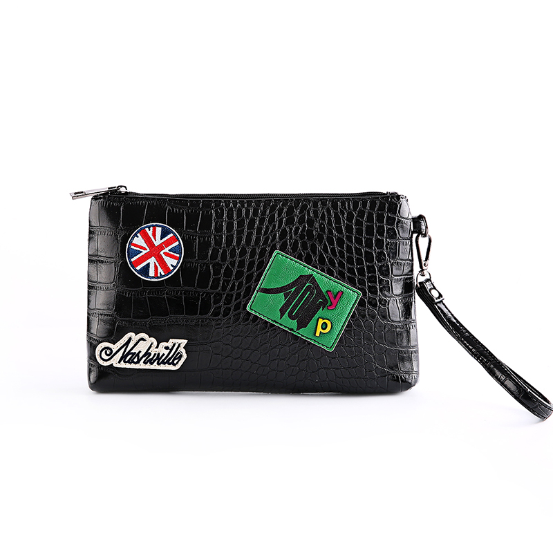 韓版男包徽章手拿包男女勛章信封包鱷魚紋手拿包手機包潮男包