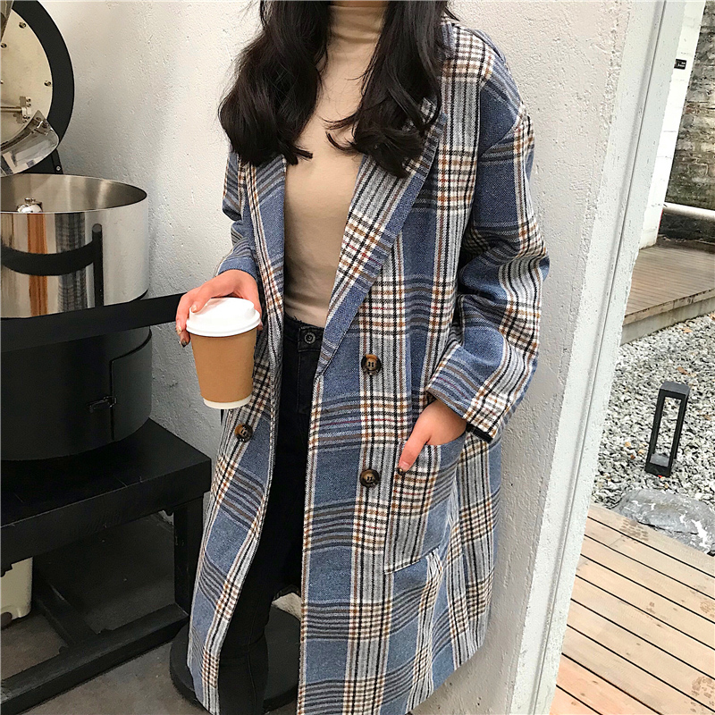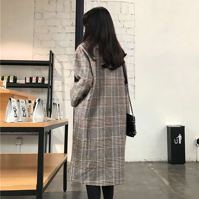 / 秋冬女裝2018新款中長款格子風衣寬松毛呢外套學生流行呢子大衣潮