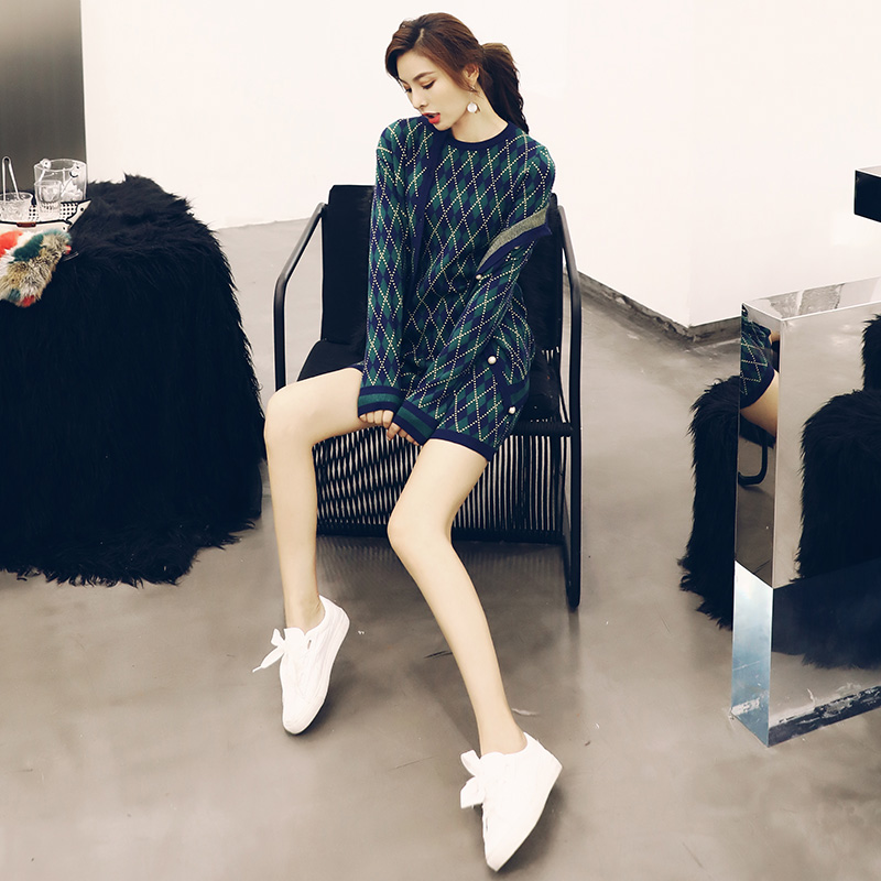 2018早秋時尚網紅韓版氣質修身短款百搭顯瘦連衣裙兩件方塊套裝