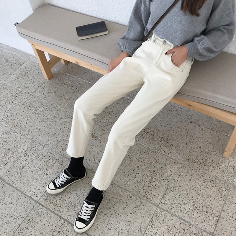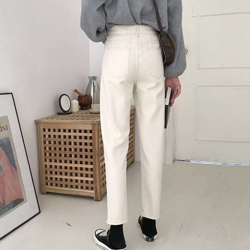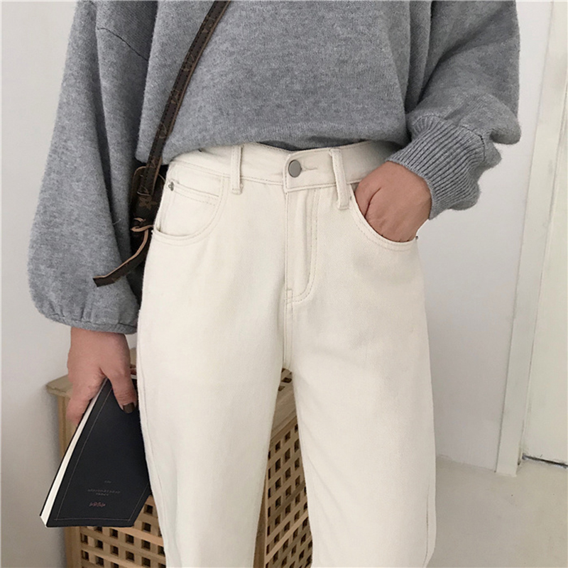 / 秋季2018新款高腰寬松直筒褲學生韓版米白色牛仔褲女裝休閑長褲子