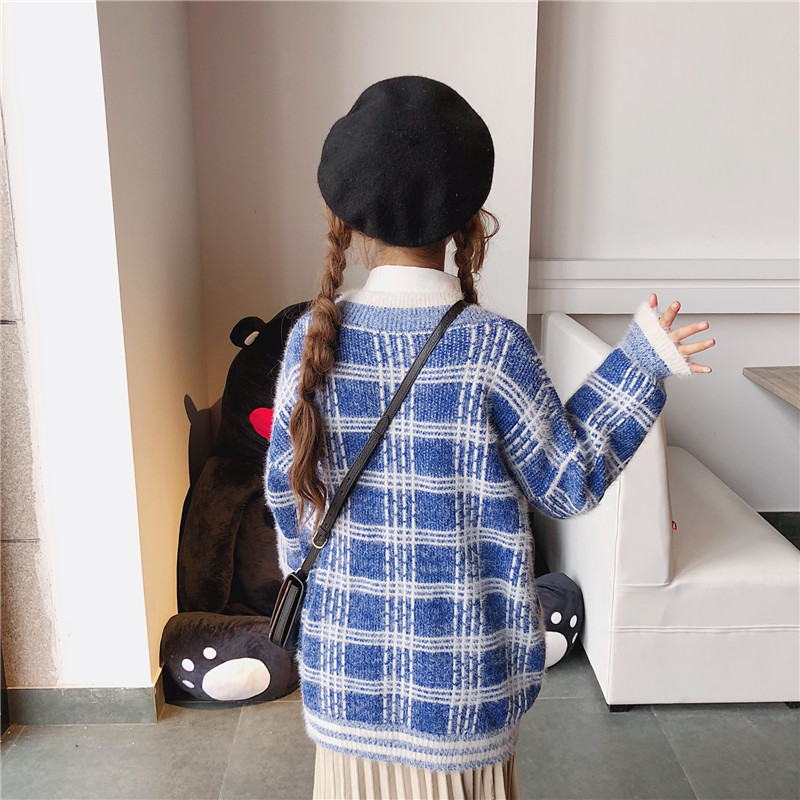 2018新款秋冬女裝韓版慵懶風寬松軟妹格子網紅針織衫毛衣開衫外套