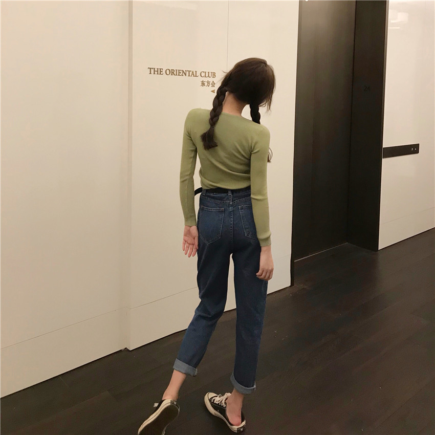 / 韓版秋冬款高腰牛仔褲顯瘦休閑百搭寬松哈倫褲長褲子(送腰帶)潮