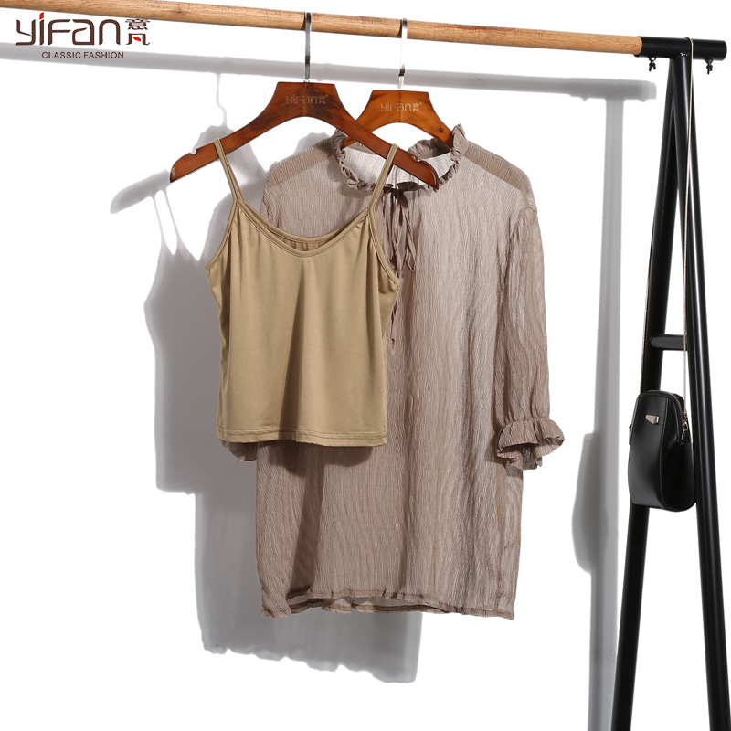 雪紡衫夏裝新款韓版寬松顯瘦喇叭袖襯衫七分袖短袖上衣兩件套