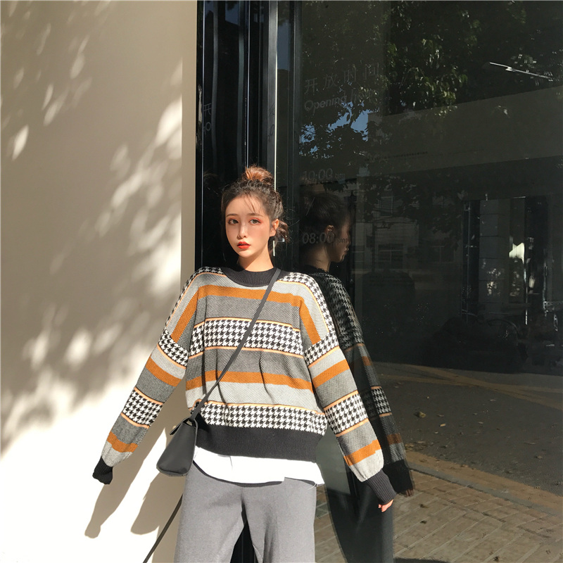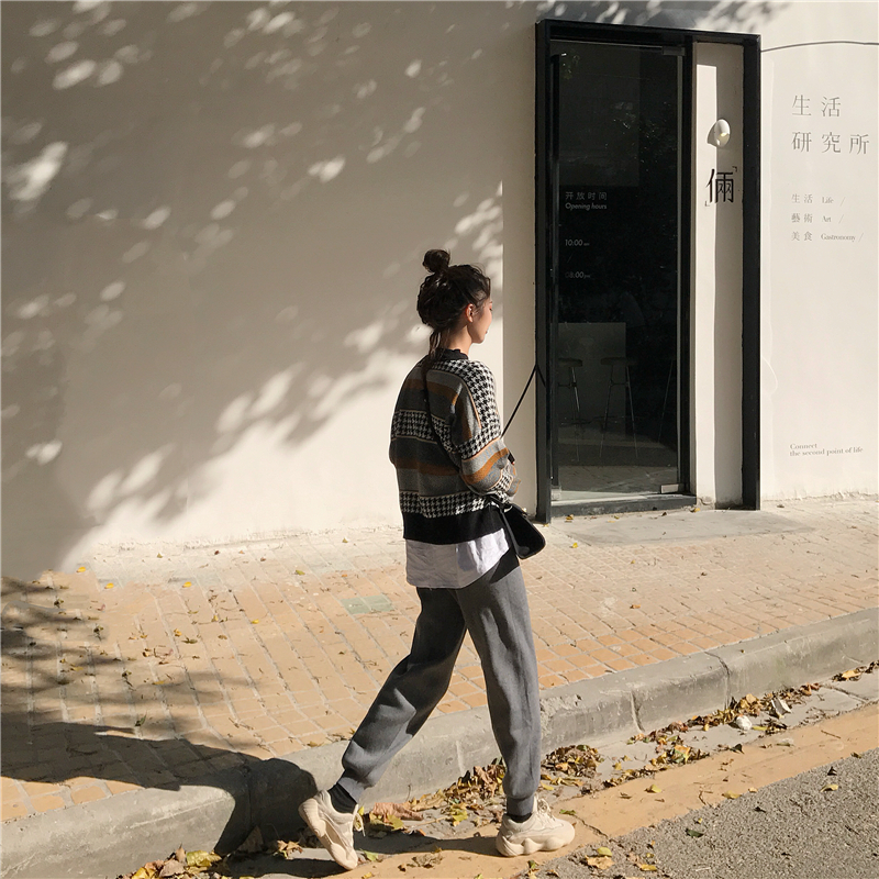 / 網紅同款秋裝女2018新款套裝包芯紗寬松針織上衣+百搭針織蘿卜褲