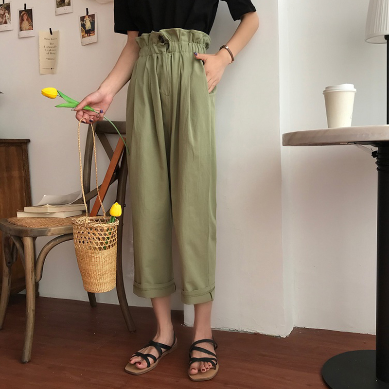 休閑褲女夏2018新款韓版女裝寬松學生百搭花苞高腰顯瘦闊腿九分褲