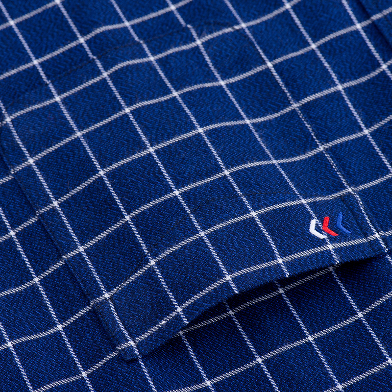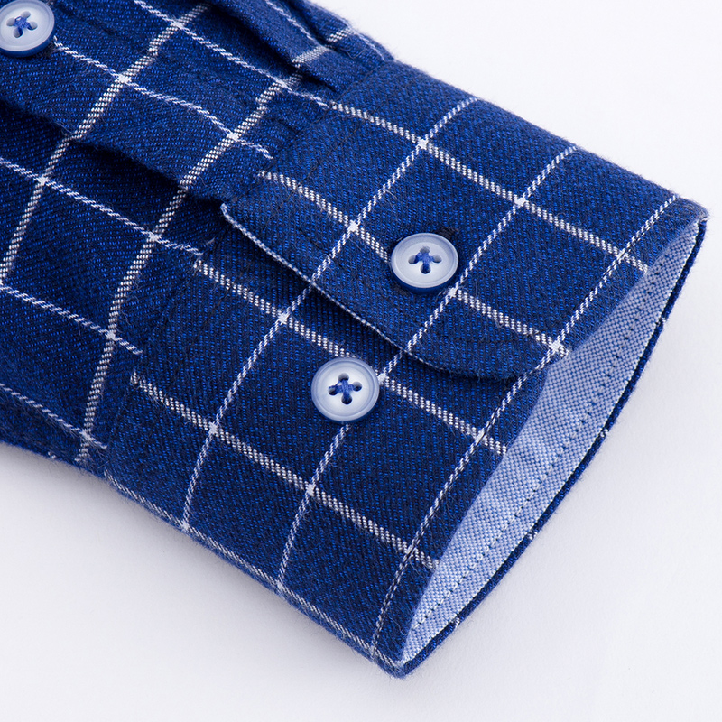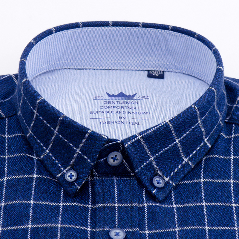 / 秋冬純棉磨毛格子襯衫男長袖休閑免燙扣領中年爸爸裝全棉襯衣大碼