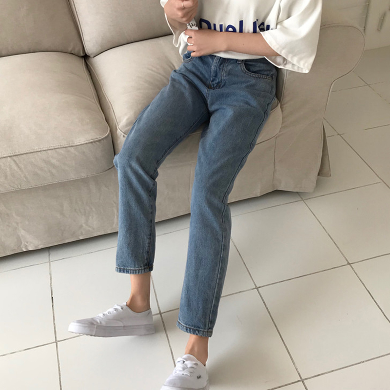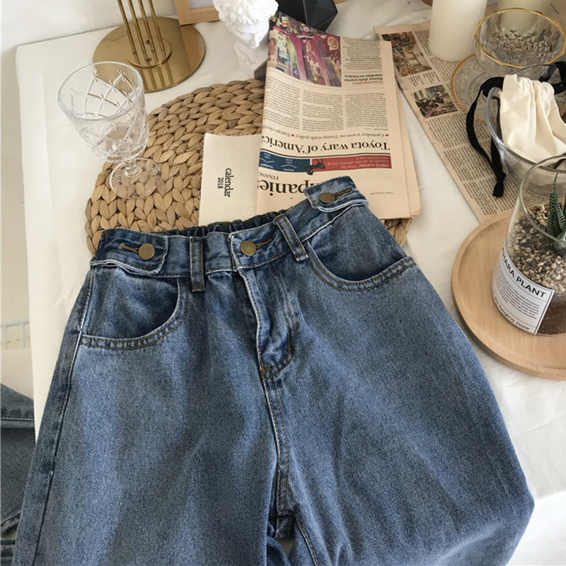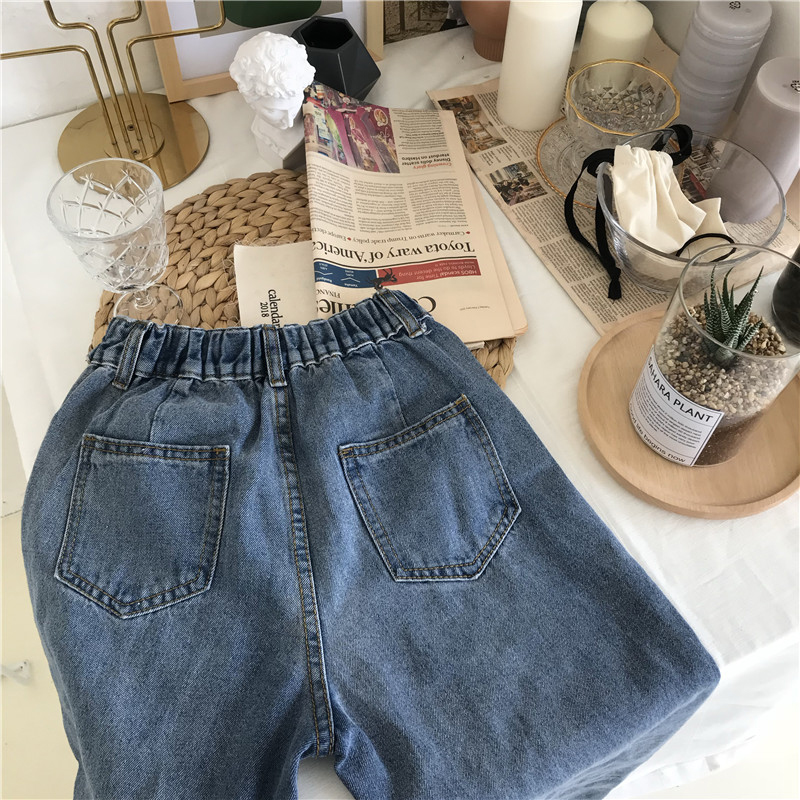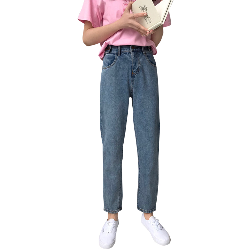 / 高腰松緊腰哈倫牛仔褲女秋2018新款韓版百搭學生寬松直筒小腳褲子
