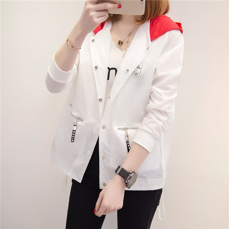 / 女裝春裝新款潮白色外套女夏寬松上衣韓版連帽薄款外套女百搭