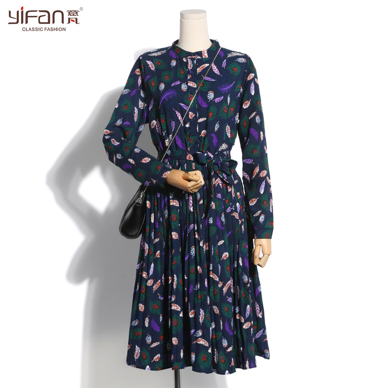 / 春裝韓版新款女裝顯瘦打底連衣裙雪紡百褶裙碎花長袖雪紡裙女