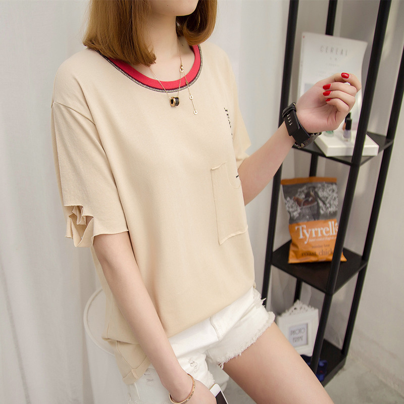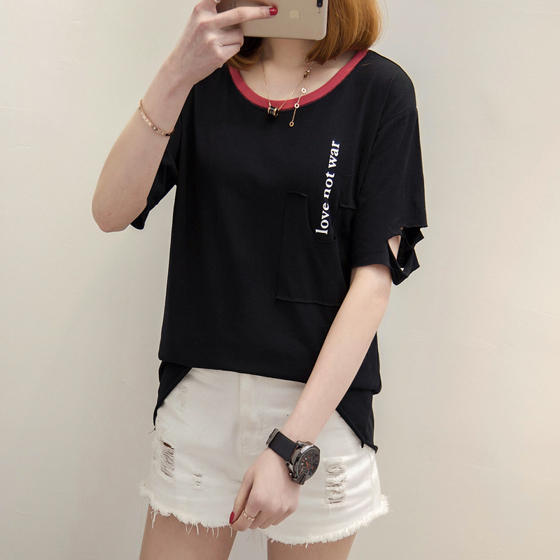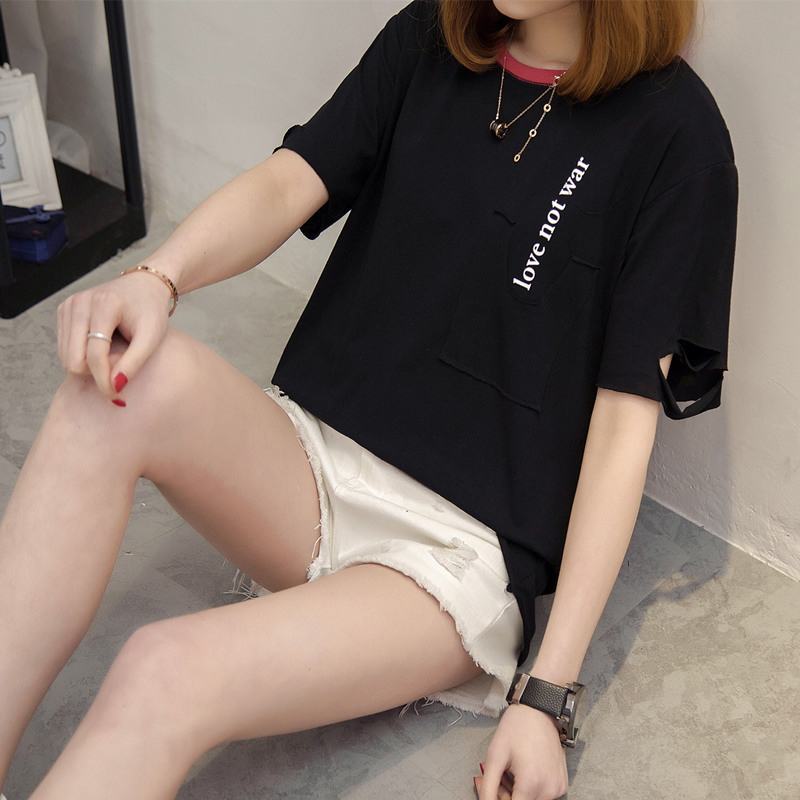 短袖t恤女上衣打底體恤女裝春裝新款潮寬松破洞韓版學生百搭