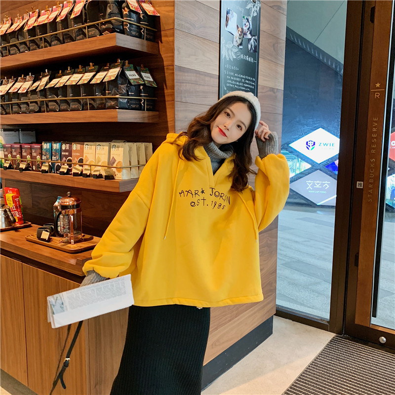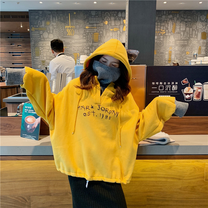 / 秋冬女裝韓版寬松原宿風字母撞色拼接高領連帽套頭衛衣上衣外套女