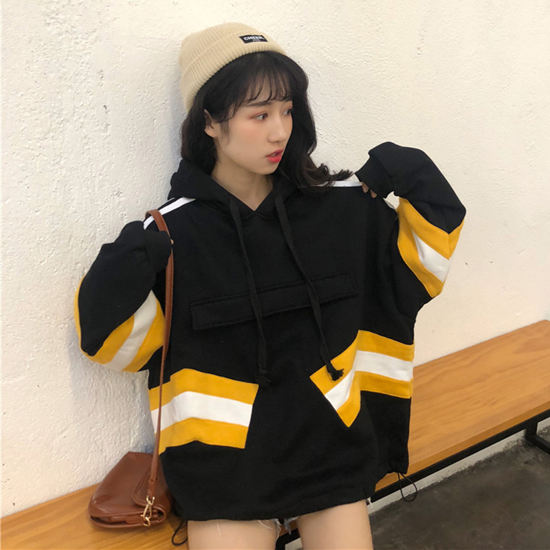 / 原宿風oversize連帽衛衣秋冬2018新款女裝時尚拼色加絨外套上衣潮