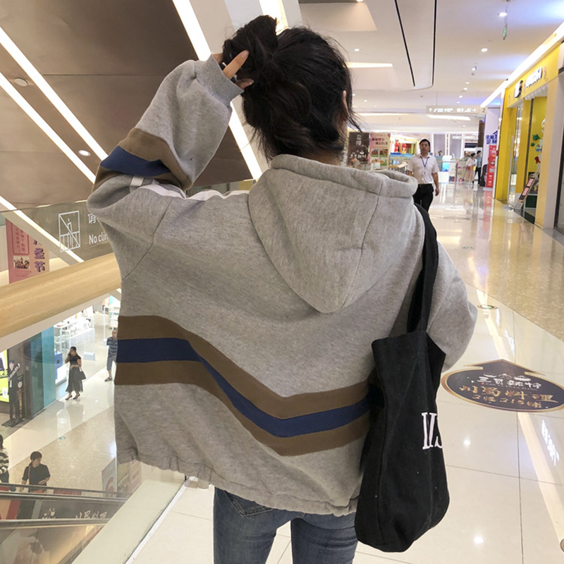 原宿風oversize連帽衛衣秋冬2018新款女裝時尚拼色加絨外套上衣潮