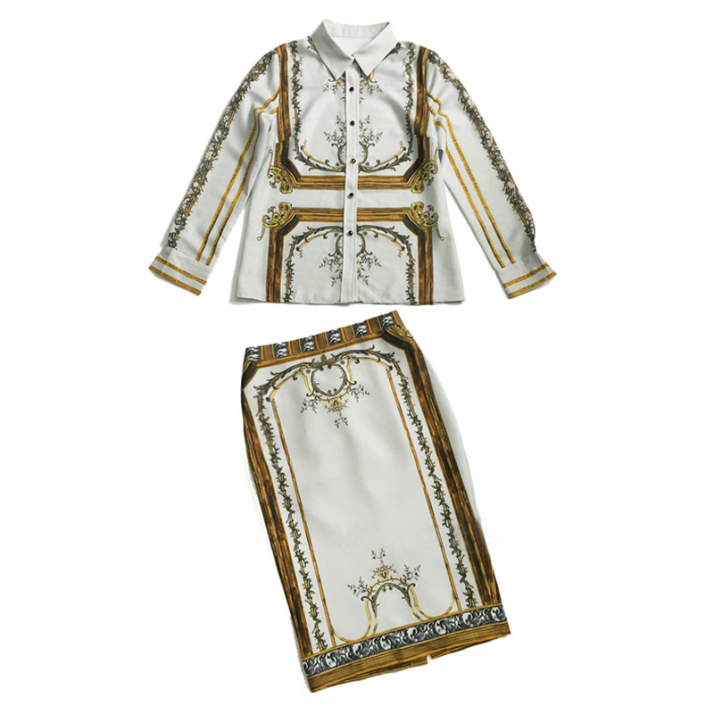 / 名媛氣質淑女2018新款女印花復古上衣半身裙子時髦兩件套時尚套裝