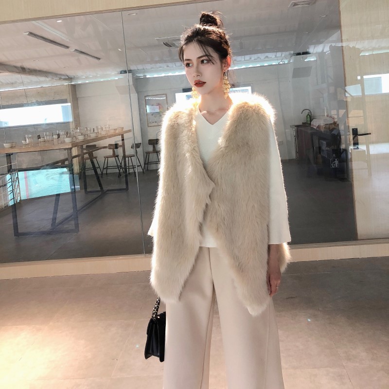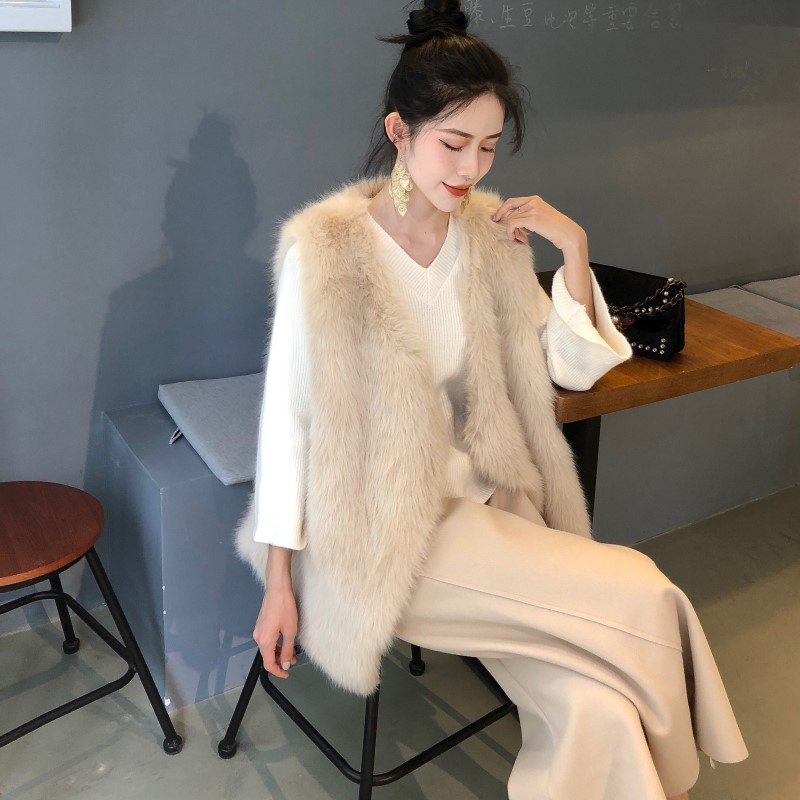 / 新款百搭毛毛馬甲寬松長袖針織衫毛呢闊腿褲三件套港風時尚套裝女