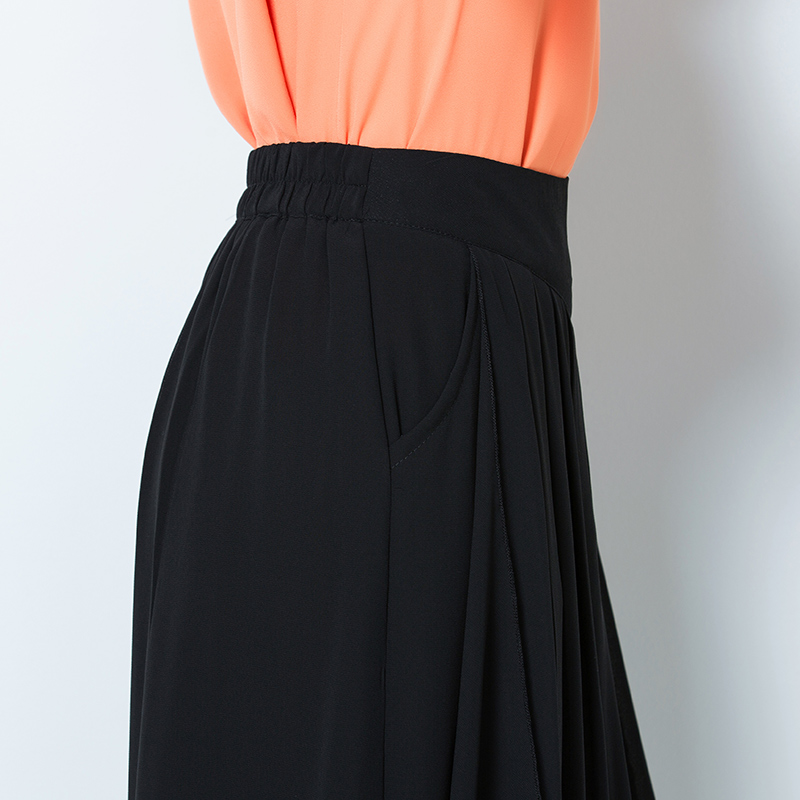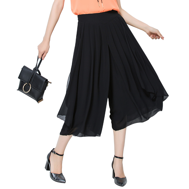 雪紡闊腿褲裙褲女七分褲高腰夏季百褶闊腳褲薄款九分寬腿褲子