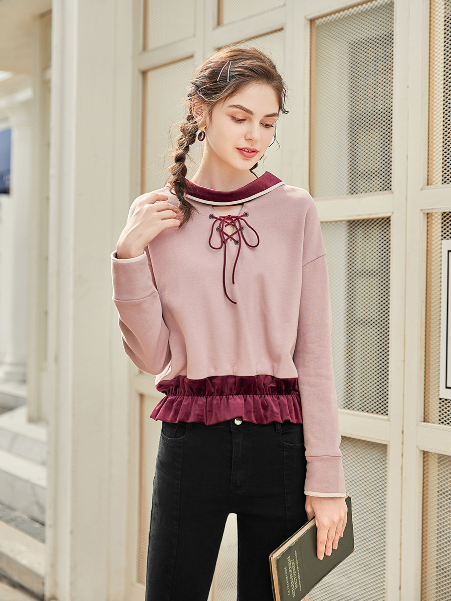 MG小象心機chic衛衣女寬松長袖2018新款學生個性拼接時尚休閑上衣