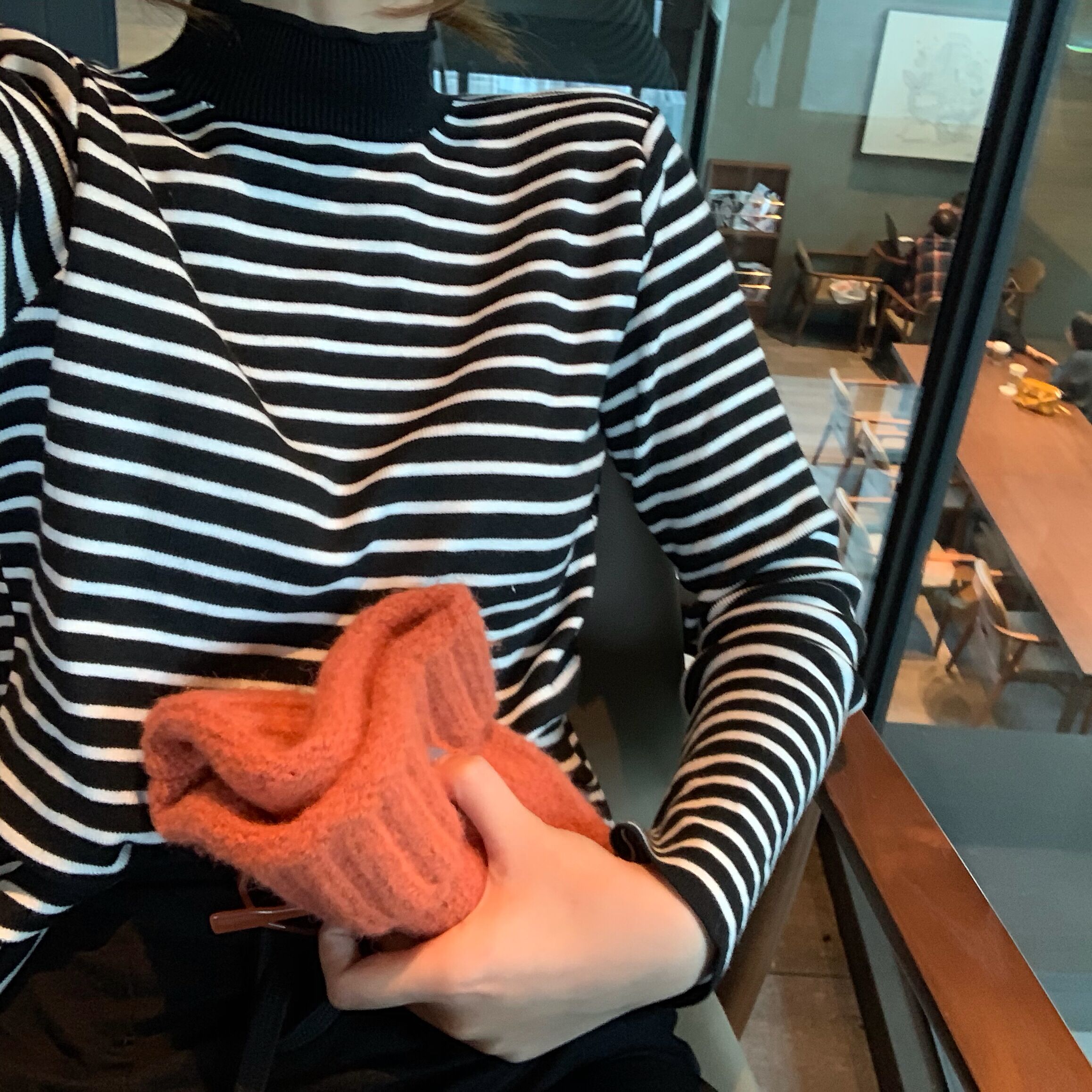 chic韓版秋冬季慵懶風氣質半高領長袖經典條紋打底套頭針織衫上衣