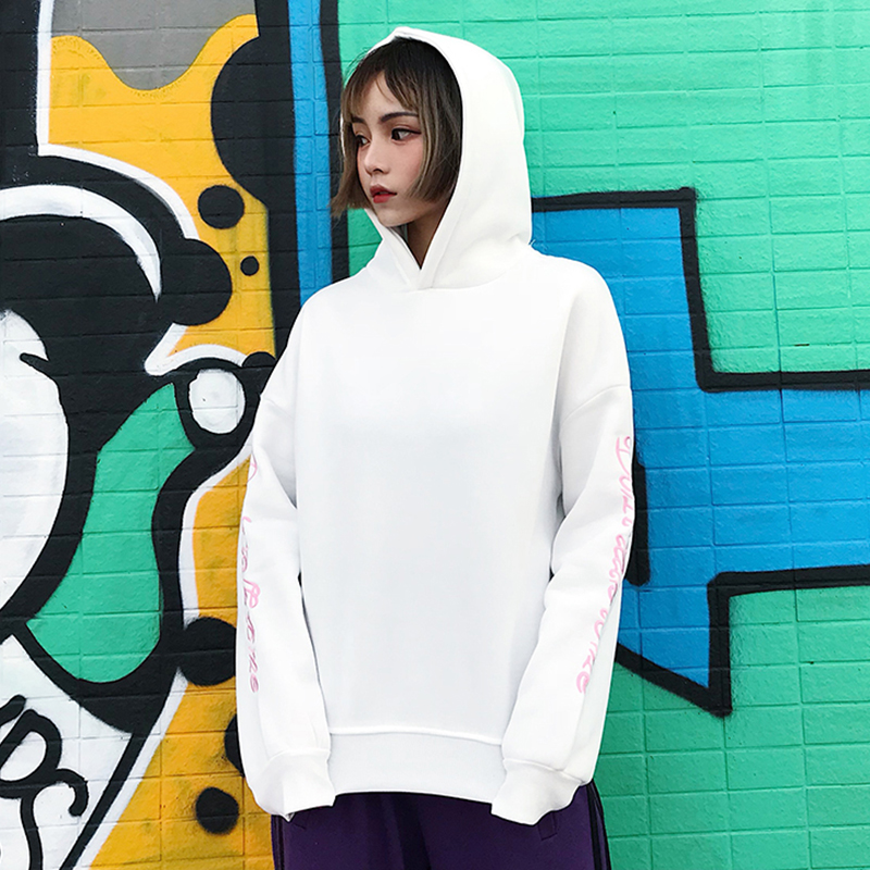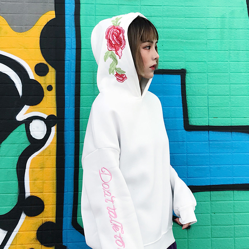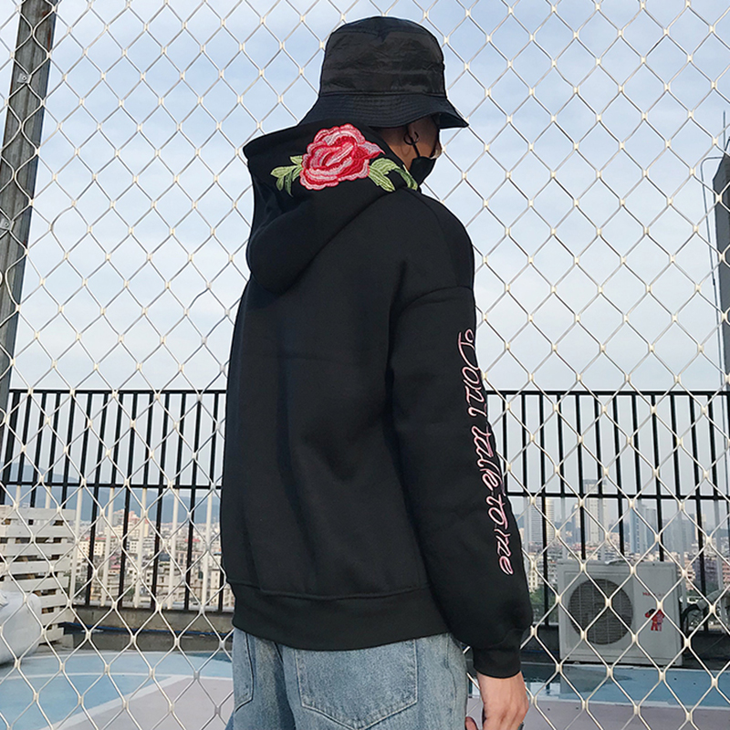 原宿風玫瑰刺繡連帽衛衣女2018秋冬裝新款韓版學生寬松長袖外套潮