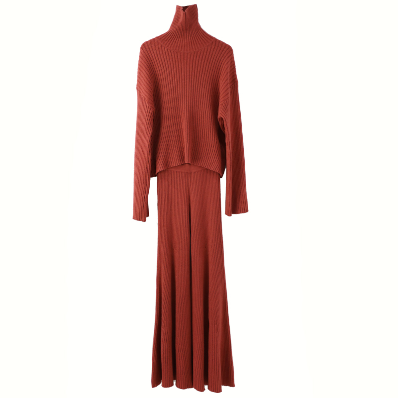 歐洲站針織兩件套闊腿褲喇叭長褲高腰顯瘦慵懶針織衫上衣毛衣套裝