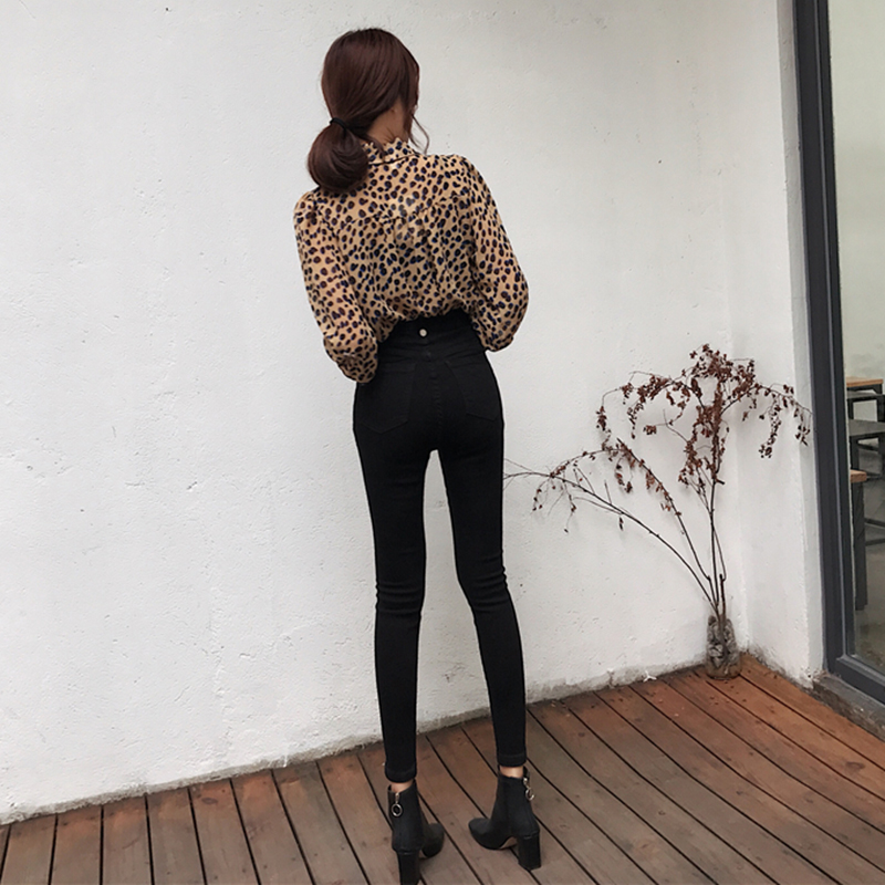 / 時尚綁帶修身彈力鉛筆秋裝女2018新款高腰牛仔長褲子黑色小腳褲潮
