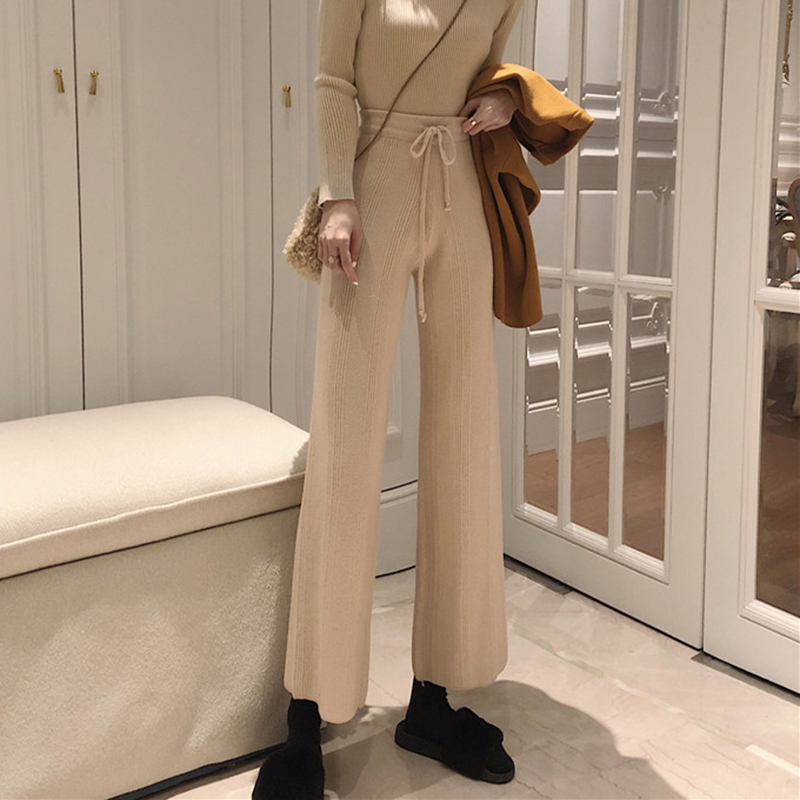 chic休閑直筒長褲子女秋冬2018新款韓版氣質高腰顯瘦針織闊腿褲潮