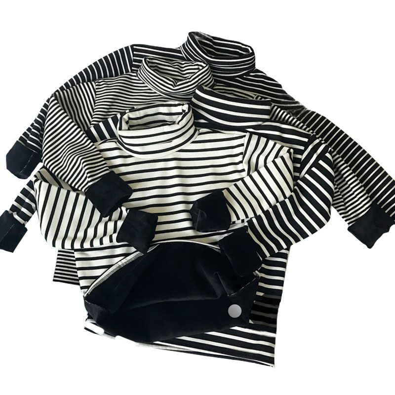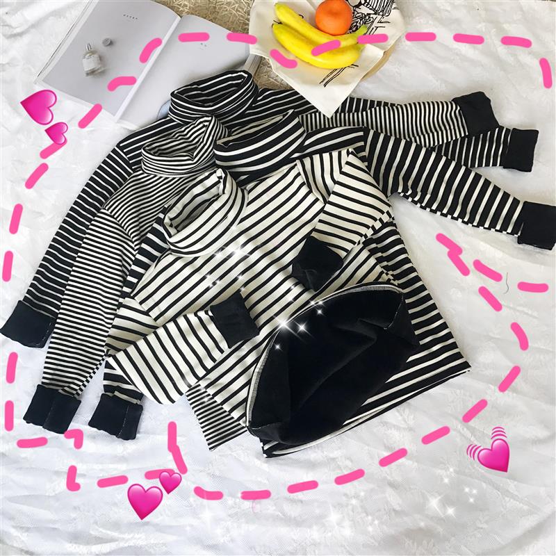 / 秋冬女裝韓版學院風修身顯瘦高領條紋長袖加絨加厚打底衫T恤上衣