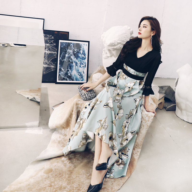 / 中袖拼接連衣裙女中長款2018秋季新款女裝時尚修身收腰chic早秋裙