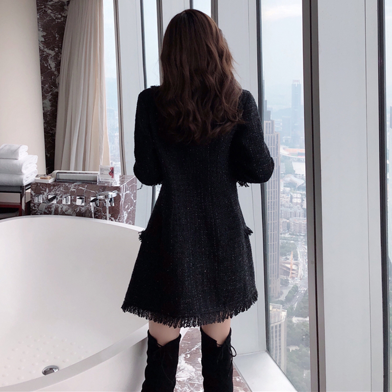 復古粗花呢大衣女秋冬裝2018新款小香風流蘇雙排扣中長款呢子外套