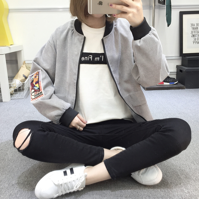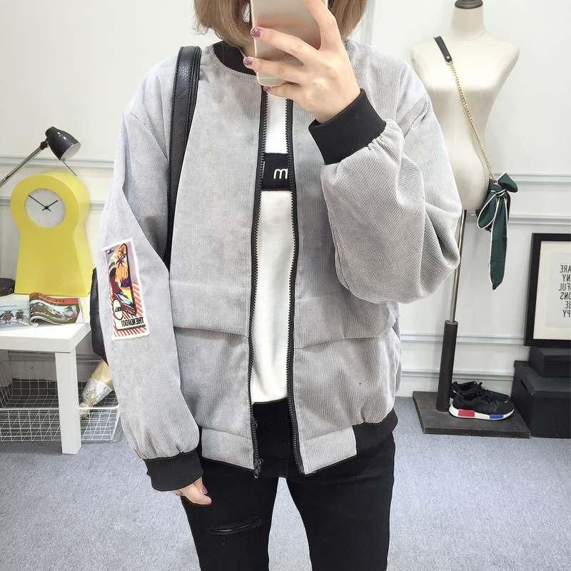 / 2017春秋新款寬松顯瘦燈芯絨外套女韓版長袖純色短款夾克上衣學生