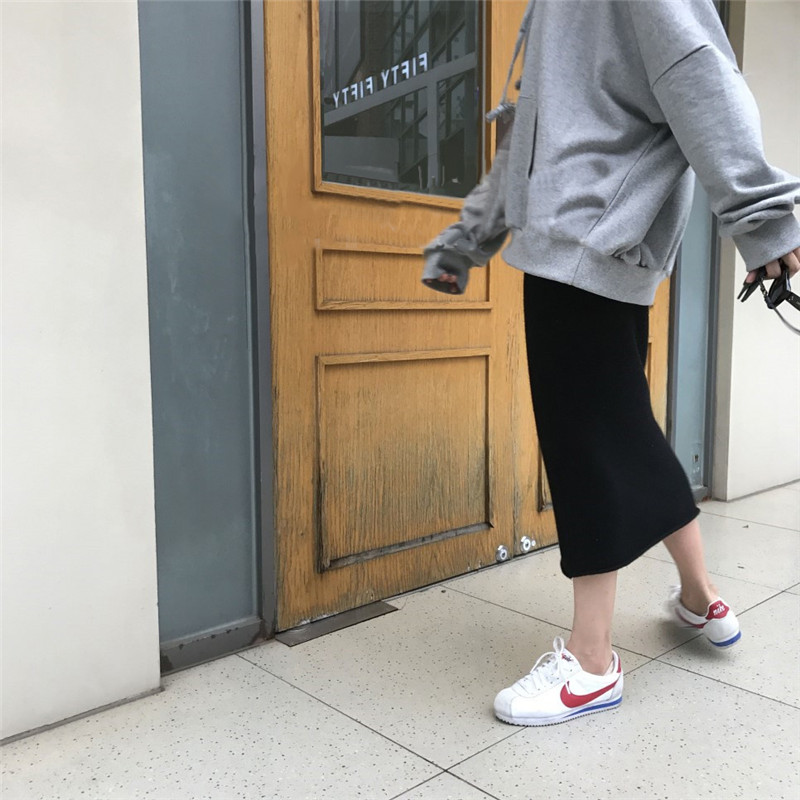 / 韓版時尚休閑套裝秋季連帽寬松套頭衛衣外套+針織半身裙兩件套女