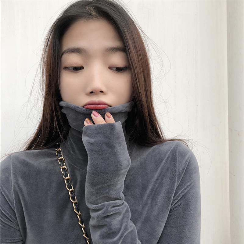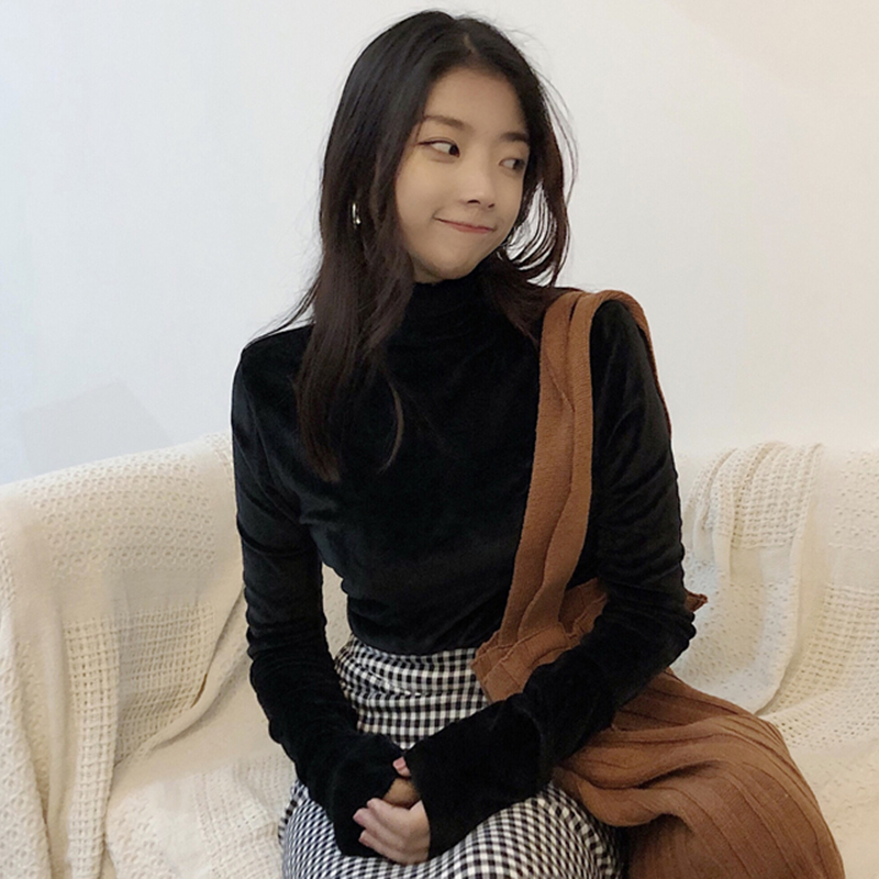 / 高領修身顯瘦打底衫女秋冬裝新款韓版絲絨黑色長袖上衣學院風T恤