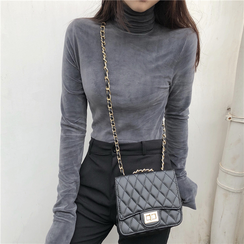 高領修身顯瘦打底衫女秋冬裝新款韓版絲絨黑色長袖上衣學院風T恤