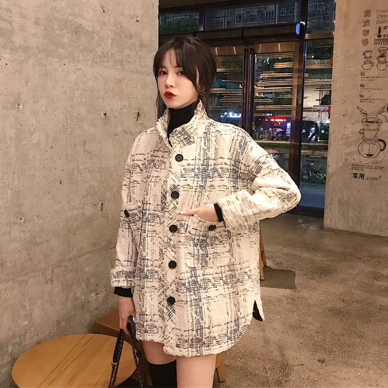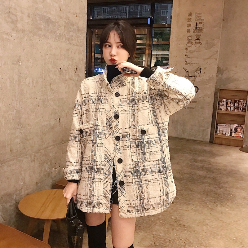 / 小香風外套女秋裝2018新款氣質立領格子寬松百搭粗花呢上衣夾克潮