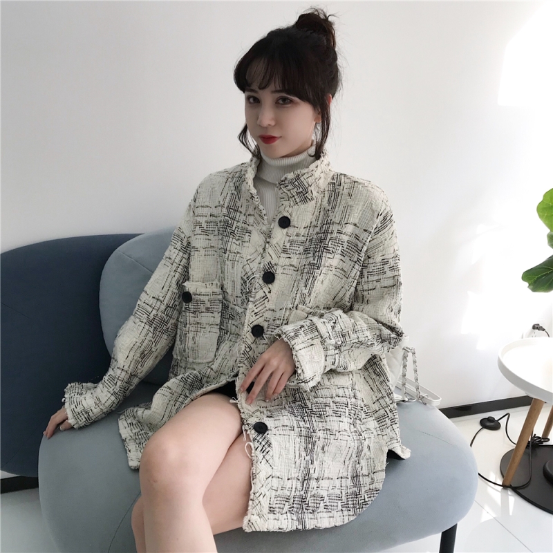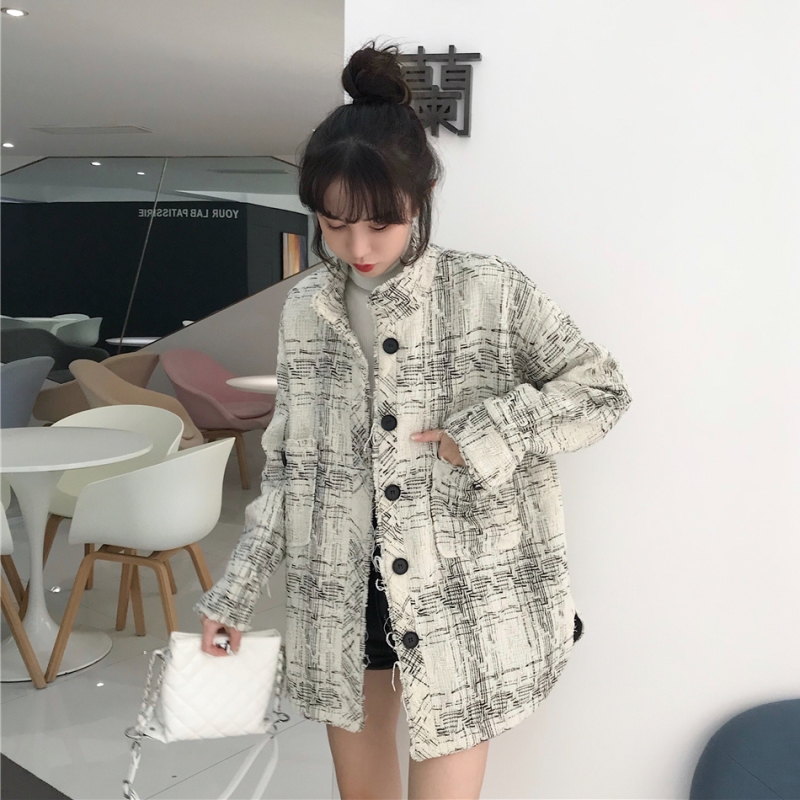 小香風外套女秋裝2018新款氣質立領格子寬松百搭粗花呢上衣夾克潮