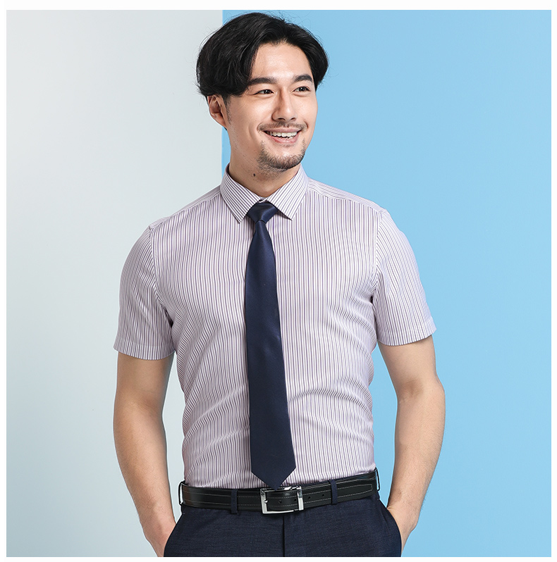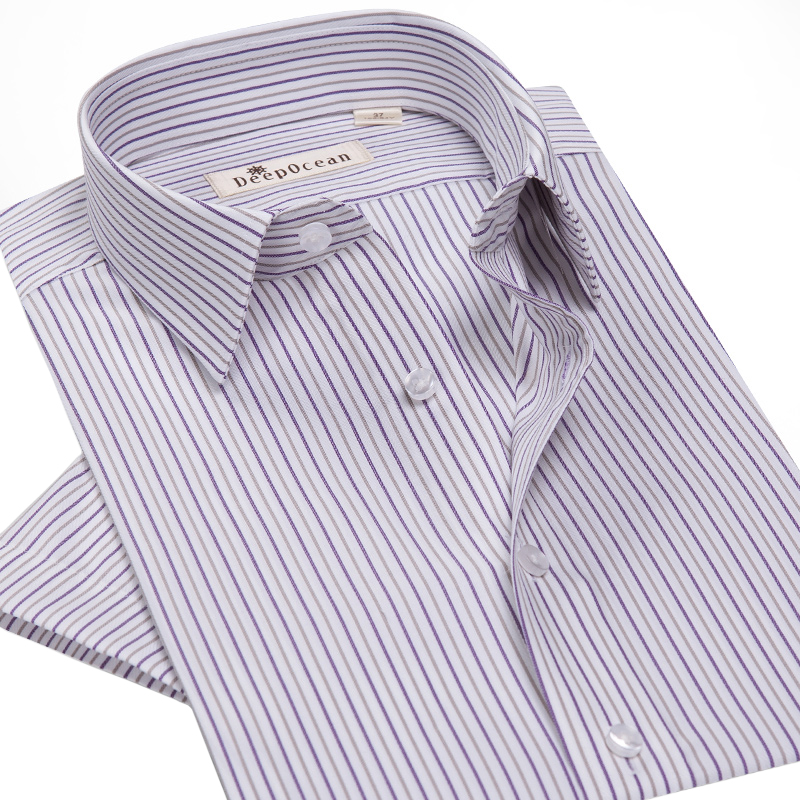 / 純棉免燙抗皺襯衫男藍白條紋襯衣短袖男士寸商務休閑修身韓版薄款
