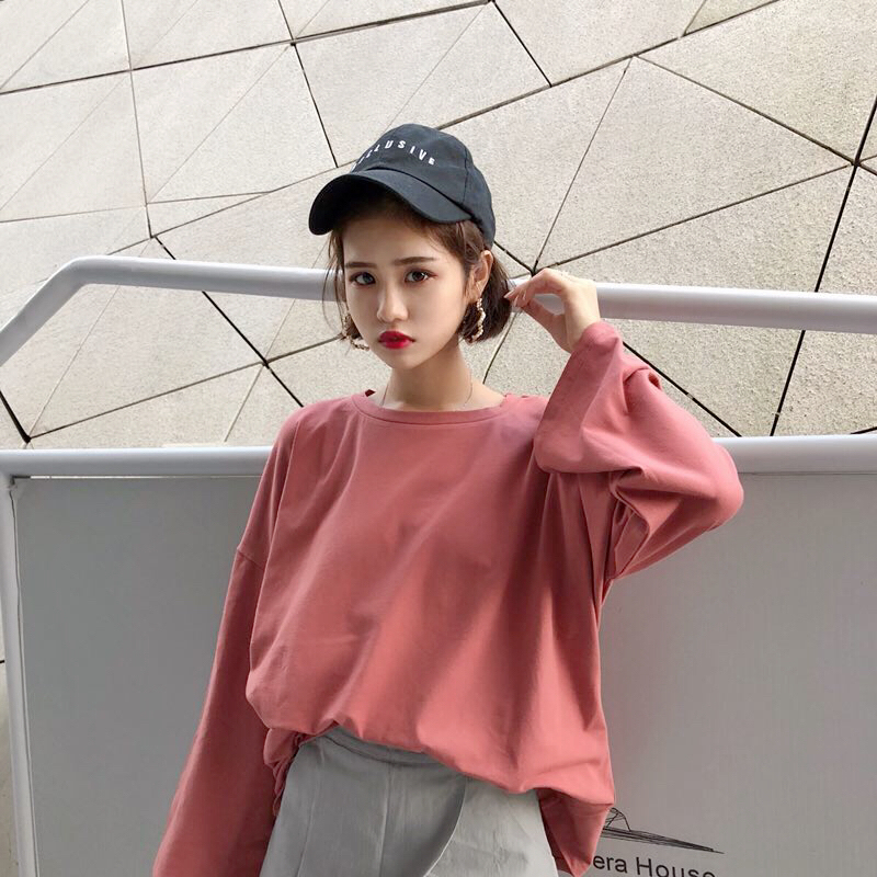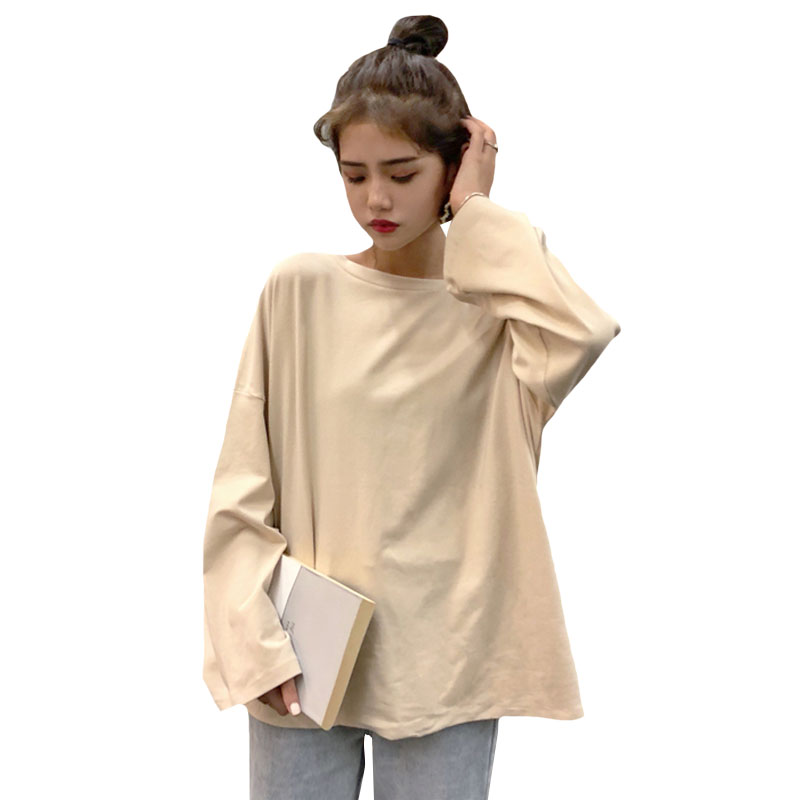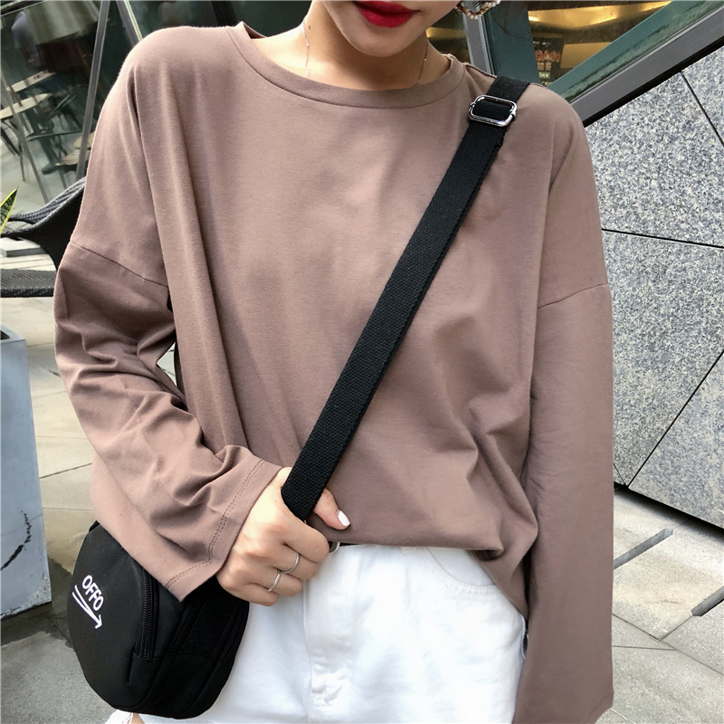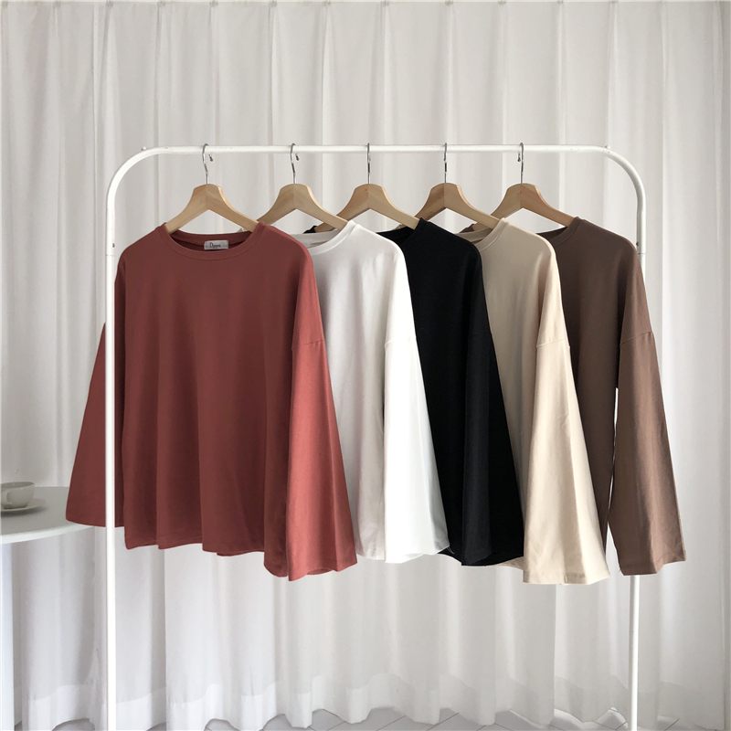 / 秋季女裝韓版基礎款簡約純色寬松百搭打底衫長袖休閑顯瘦T恤上衣