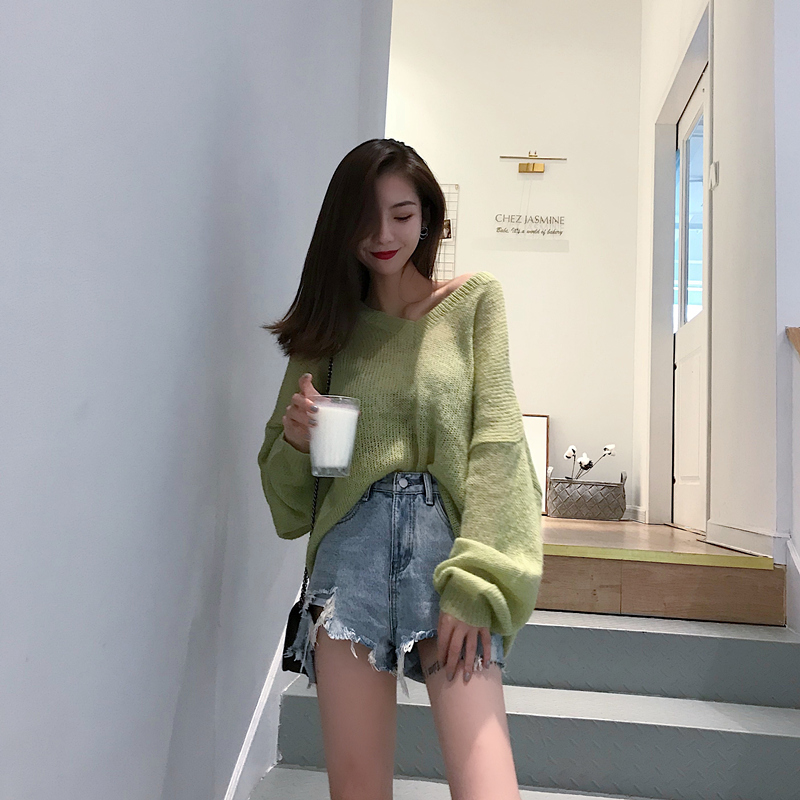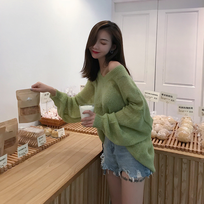 / 2018秋裝新款韓版百搭復古chic上衣寬松套頭慵懶風V領長袖毛衣女