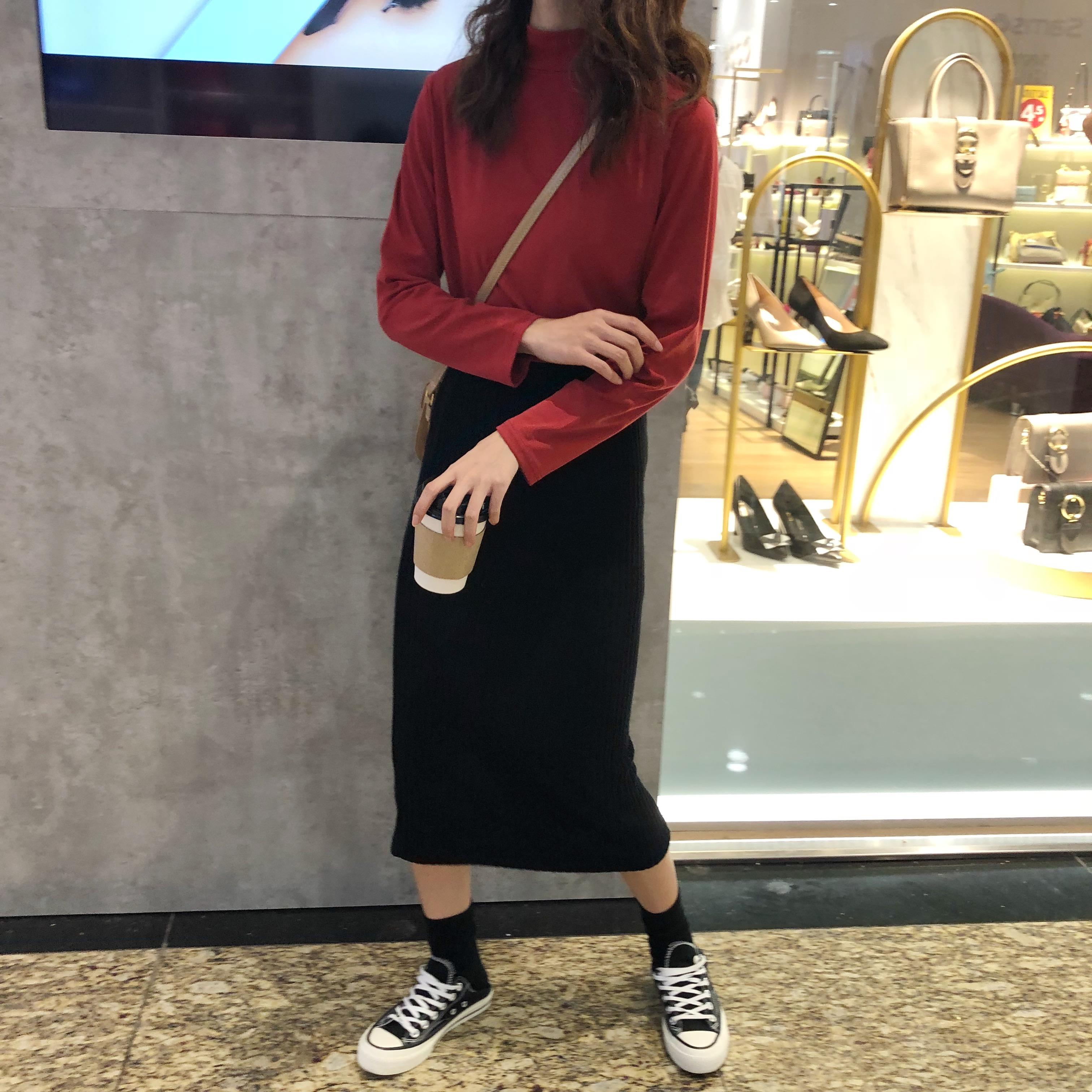 / 秋冬女裝韓版氣質純色修身顯瘦半高領長袖休閑打底衫T恤上衣學生