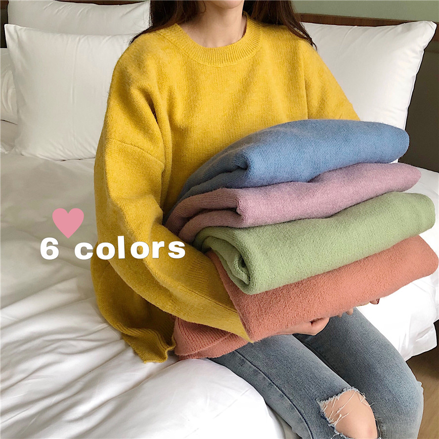 韓版慵懶風套頭毛衣女2018新款秋冬寬松網紅針織衫女糖果色外套潮