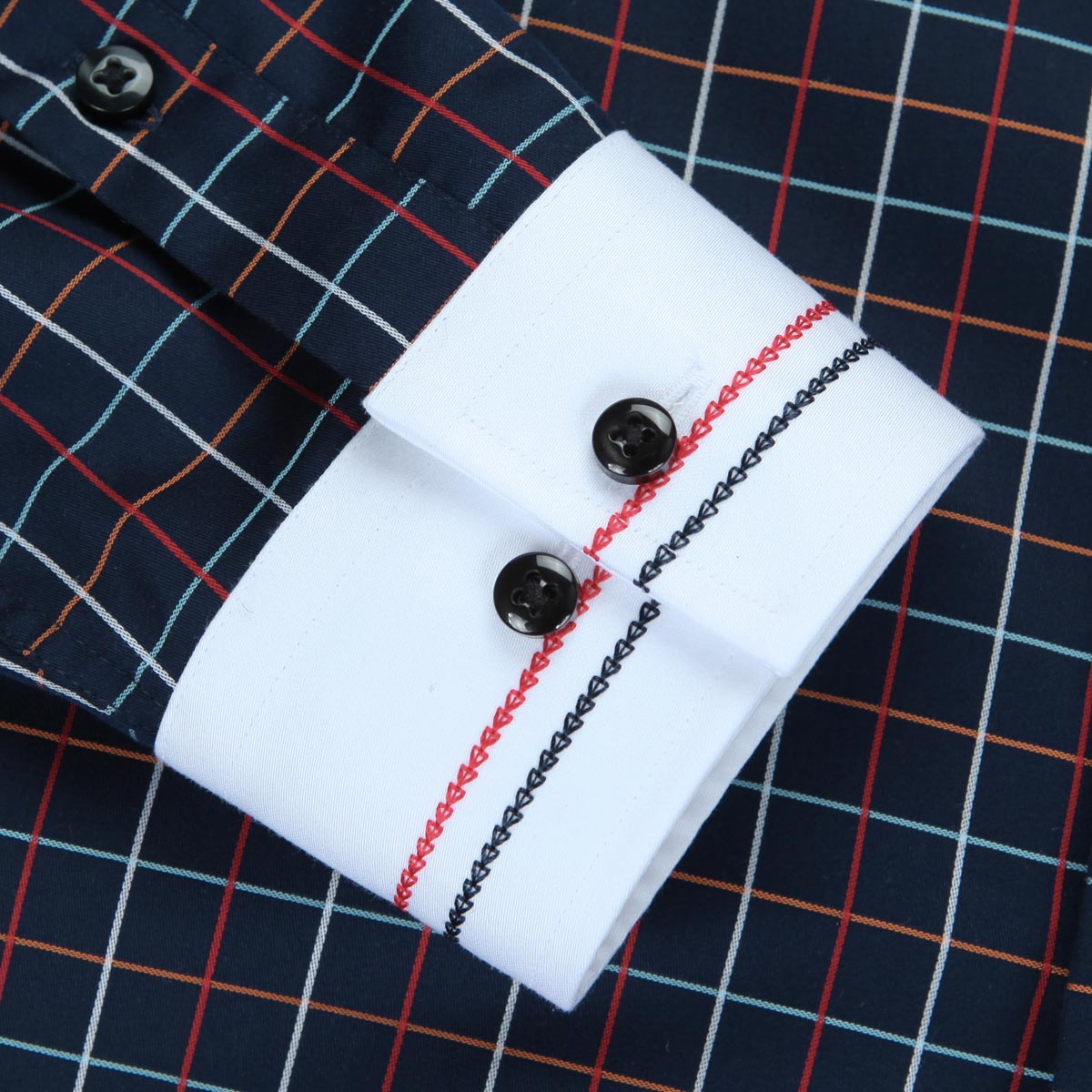 / 深海秋裝男士襯衣修身型襯衫男長袖青少年韓版純棉異色領格子男裝