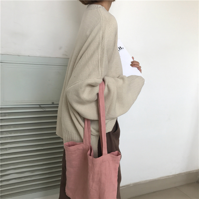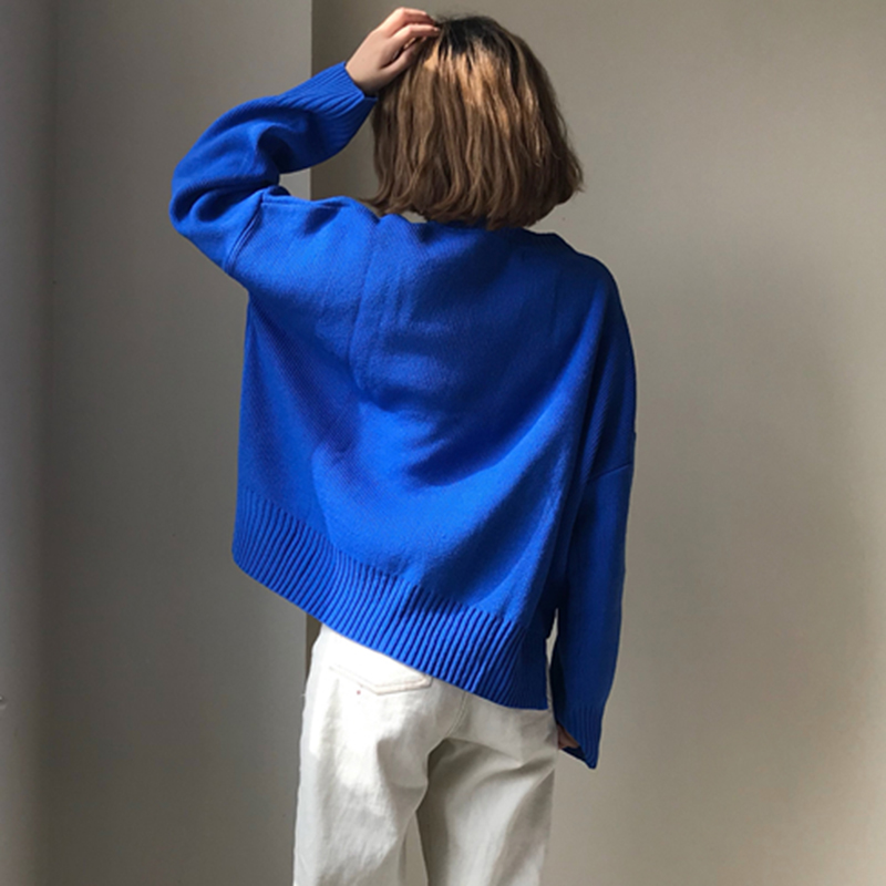 女秋裝2018新款簡約純色圓領打底毛衣學生慵懶寬松長袖開叉上衣潮